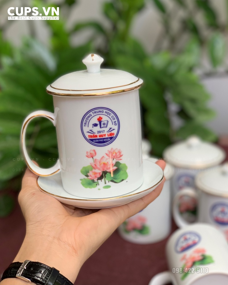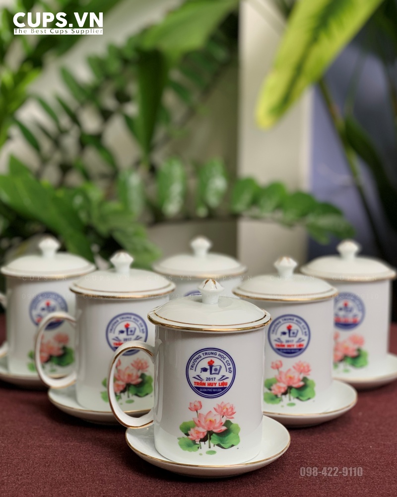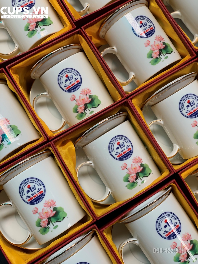 Liên hệ đặt in bộ cốc sứ viền vàng