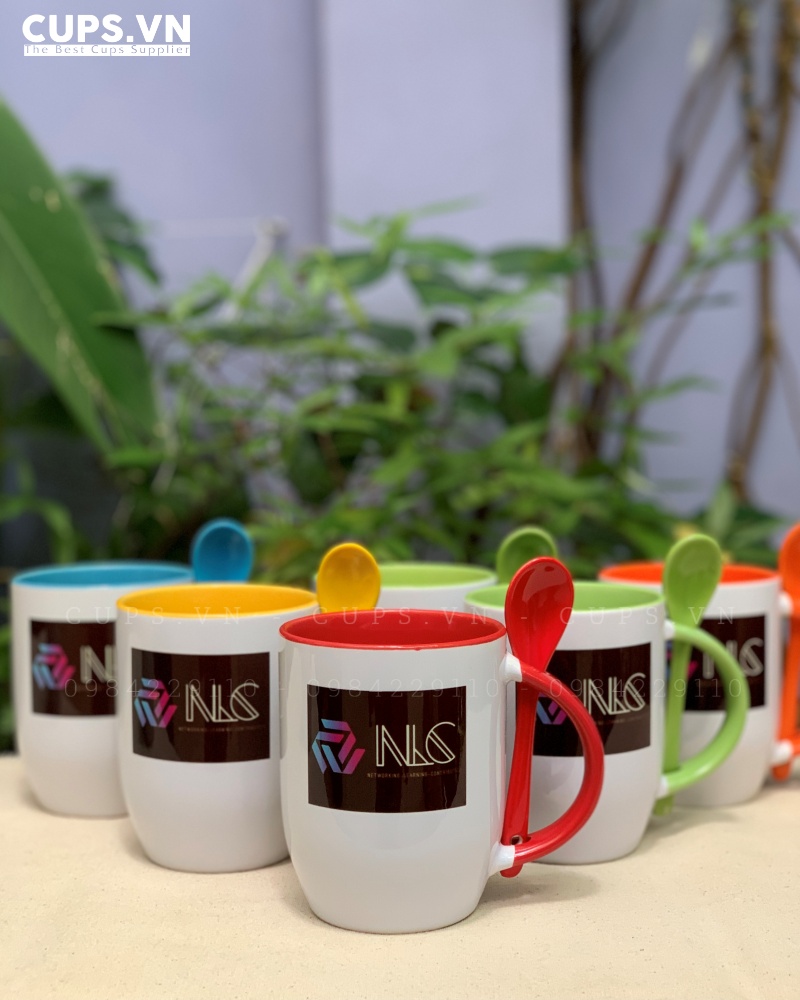 - Cốc Dáng Bầu Có Thìa – In Hình, In Logo Không Giới Hạn