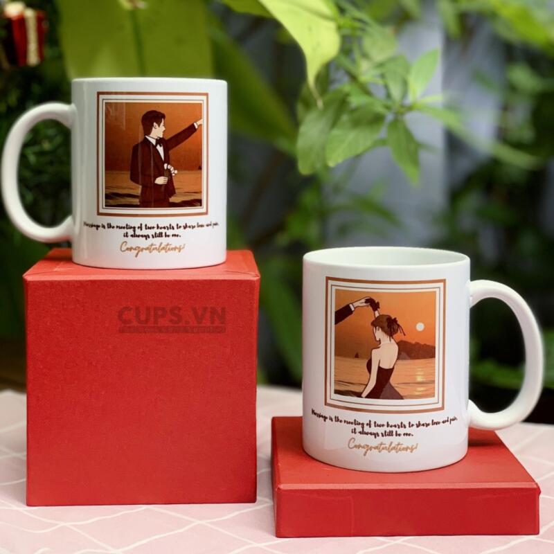 Chiếc ly sứ in hình cặp đôi cùng lời nói yêu thương chắc chắn sẽ làm “nửa kia” bất ngờ đấy.