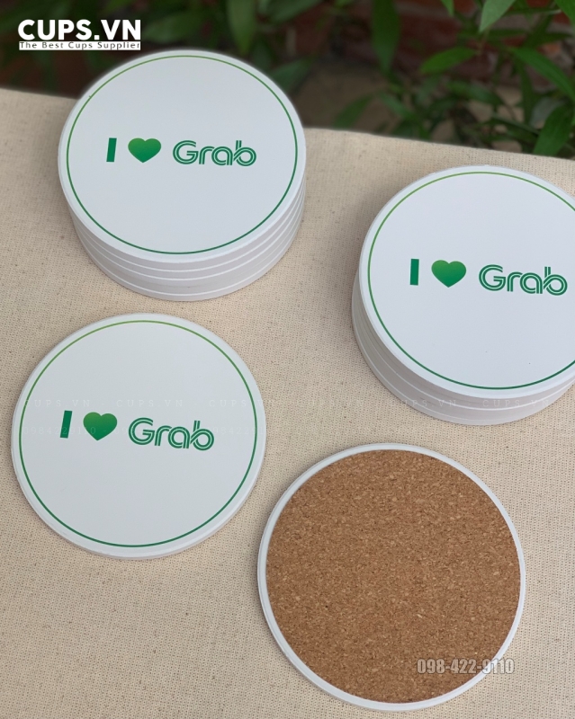 Với môi trường văn phòng hiện đại và đội ngũ nhân sự đông đảo, GRAB ưu tiên những vật dụng nhỏ nhưng mang tính đồng bộ thương hiệu cao. Lót ly gốm sứ in logo được lựa chọn với thiết kế tối giản, màu sắc bám sát bộ nhận diện.