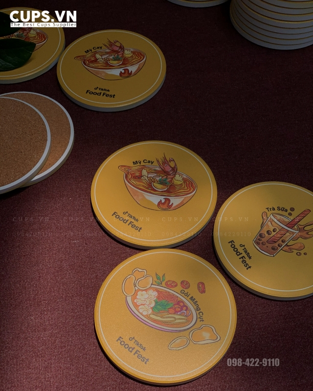 - Lót ly gốm sứ in logo cho Tiktok food cực bắt mắt
