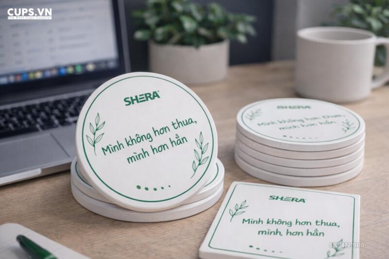 Lót ly gốm không chỉ giúp bàn làm việc gọn gàng hay bảo vệ mặt bàn khỏi nước đọng – mà còn là vật phẩm truyền thông thương hiệu bền vững.