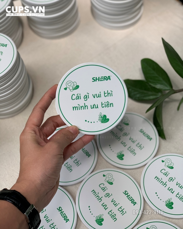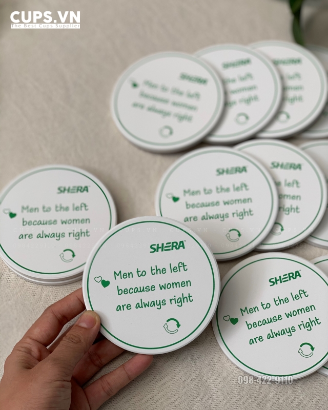 Là thương hiệu đến từ Thái Lan, SHERA đặt yêu cầu cao về chất lượng sản phẩm và độ chính xác khi in logo theo guideline quốc tế. Lót ly gốm sứ in logo được lựa chọn vì khả năng kiểm soát màu sắc tốt, bề mặt gốm ổn định và độ hoàn thiện cao.