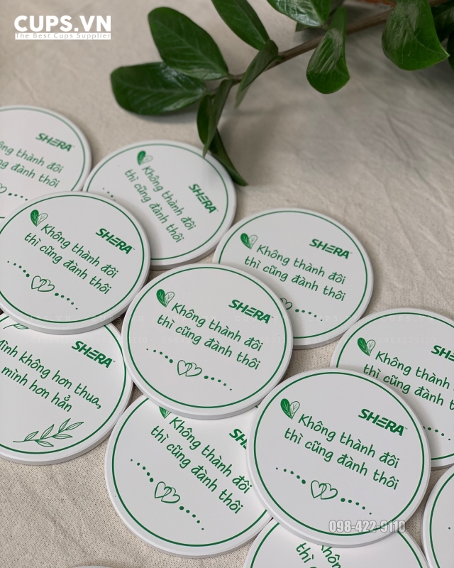 - Lót ly gốm sứ thấm hút nước tốt, in logo sắc nét cho văn phòng