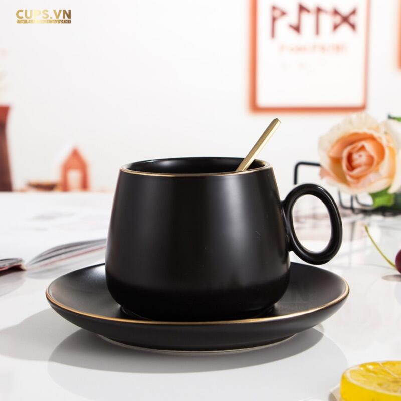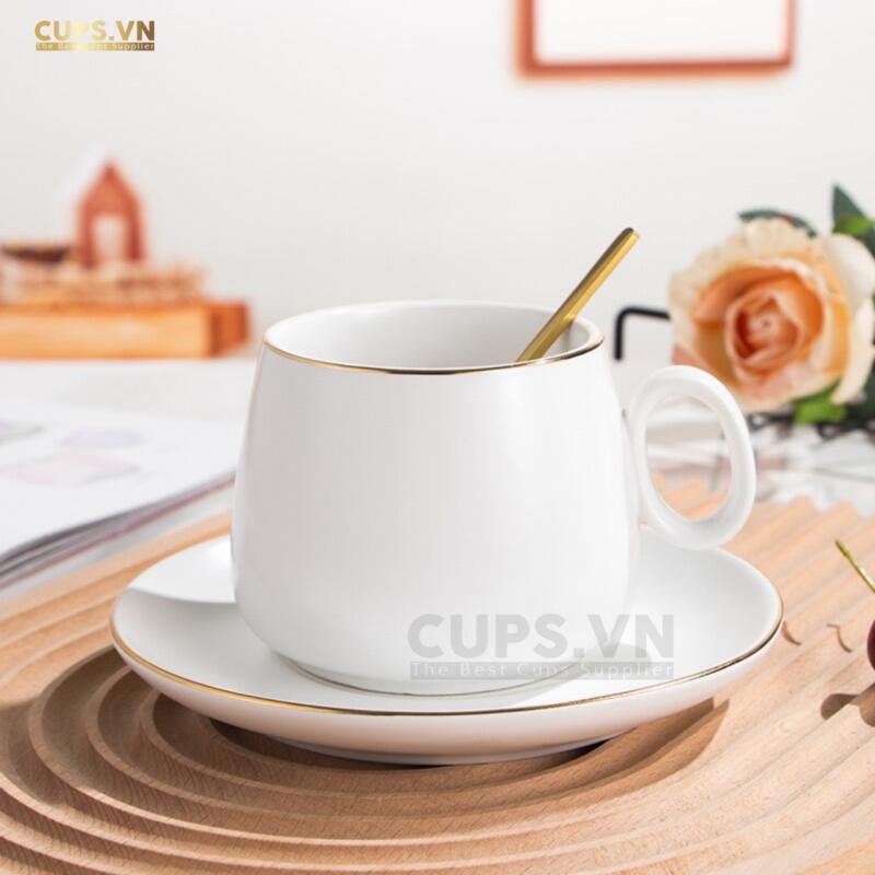 Ly Gốm Viền Vàng Cao Cấp Kèm Đĩa Lót