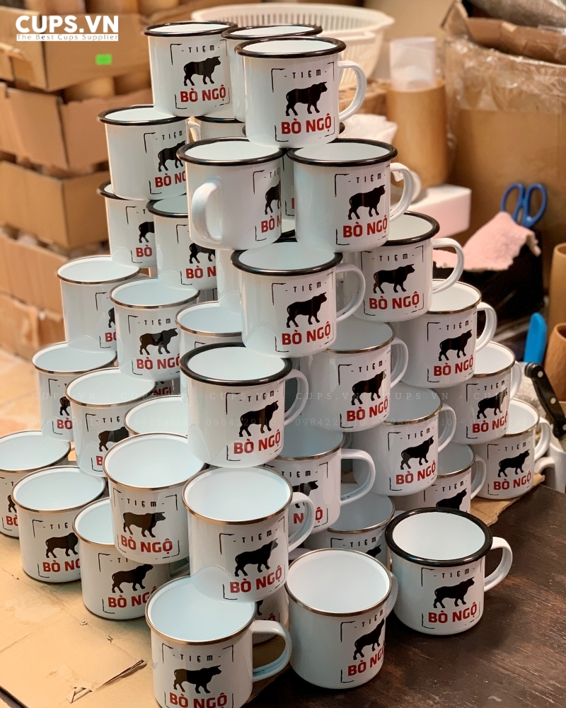 Một trong những lý do khiến Ly Sắt Tráng Men Viền Đen được nhiều doanh nghiệp lựa chọn là khả năng in logo hoặc hình ảnh cá nhân hóa.