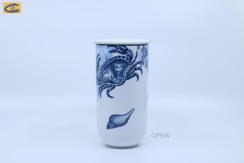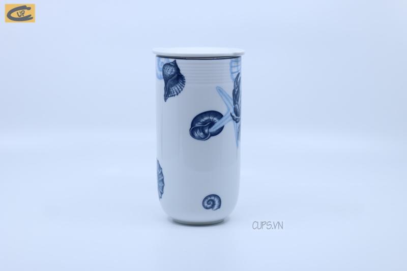 - Sản phẩm được lấy cảm hứng từ vẻ đẹp mênh mông của biển cả, cả chiếc ly tựa như đại dương thu nhỏ với tone màu chủ đạo trắng xanh, điểm xuyến ở thân ly là họa tiết các loài động vật, mang đậm hơi thở biển cả.