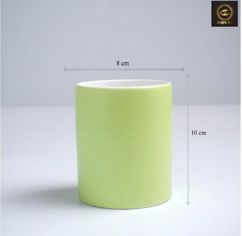 Mẫu ly men màu dáng trụ mang đến sự cân đối hoàn hảo với hình khối đơn giản nhưng đầy tinh tế. Thành ly thẳng đứng giúp tối ưu dung tích, trong khi lớp men màu sáng bóng hoặc nhám mờ tạo nên sức hút riêng biệt. Đây là lựa chọn lý tưởng cho những ai yêu thích phong cách tối giản nhưng vẫn muốn sở hữu một chiếc ly sứ đầy cá tính.
