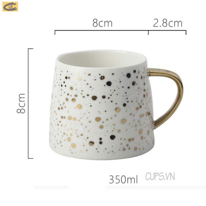 - Màu sắc tao nhã, thanh lịch, với điểm nhấn là các họa tiết chấm vàng tròn được phủ quanh ly, tạo điểm nhấn bắt mắt. Nét ngẫu hứng có sự sắp xếp mang tính nghệ thuật cao.