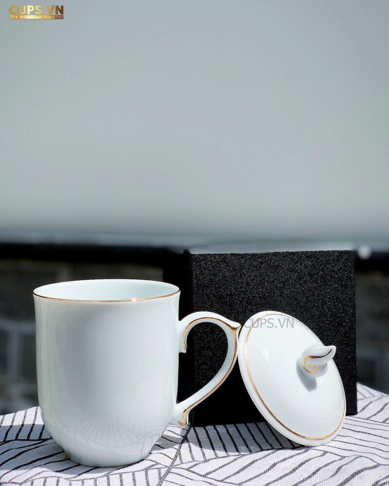 Mẫu Ly Sứ Có Nắp Đậy Viền Vàng Cao Cấp