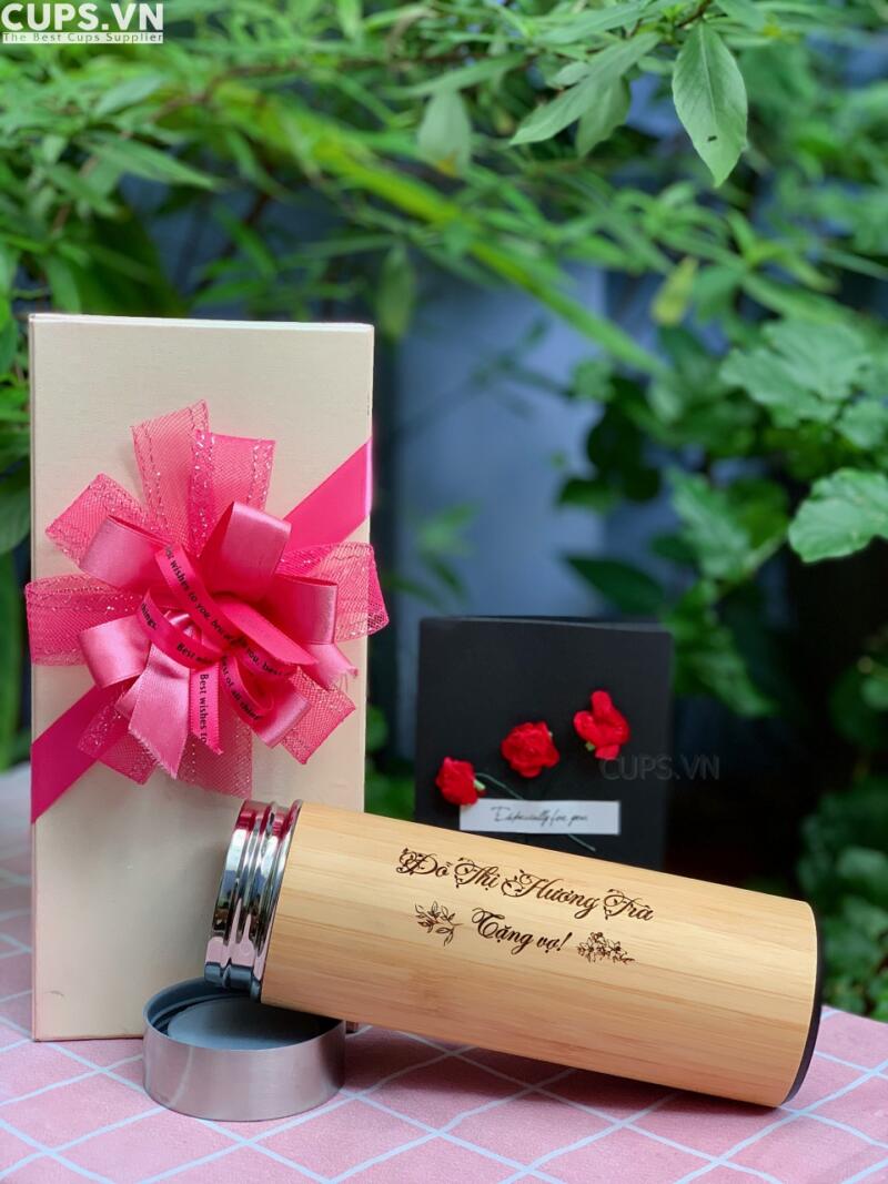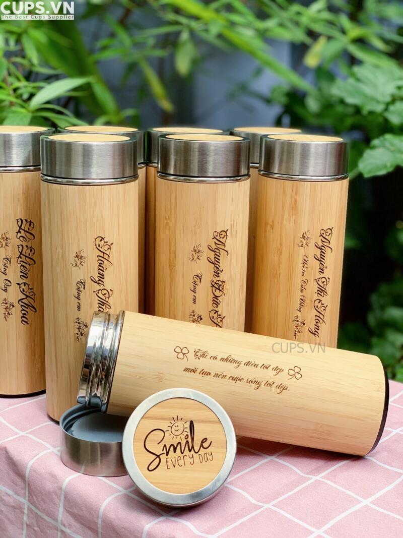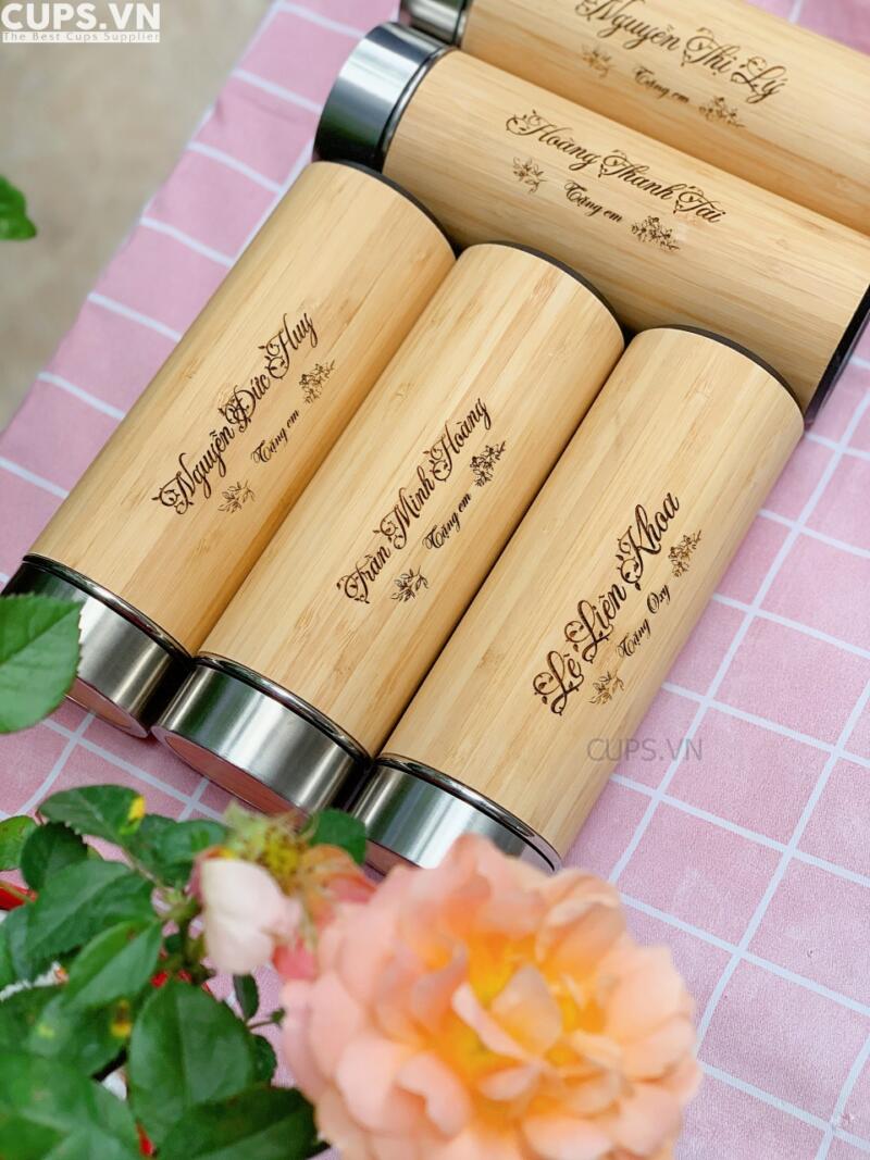 - Ly (cốc) tre có thể khắc tên thầy cô kèm lời chúc theo yêu cầu.